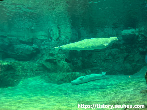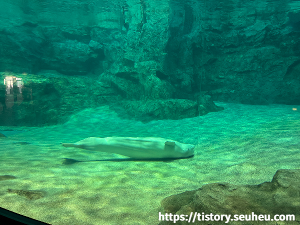 돌고래쇼가 끝난 후, 중간 공간에서 벨루가(흰 돌고래)들을 만날 수 있음