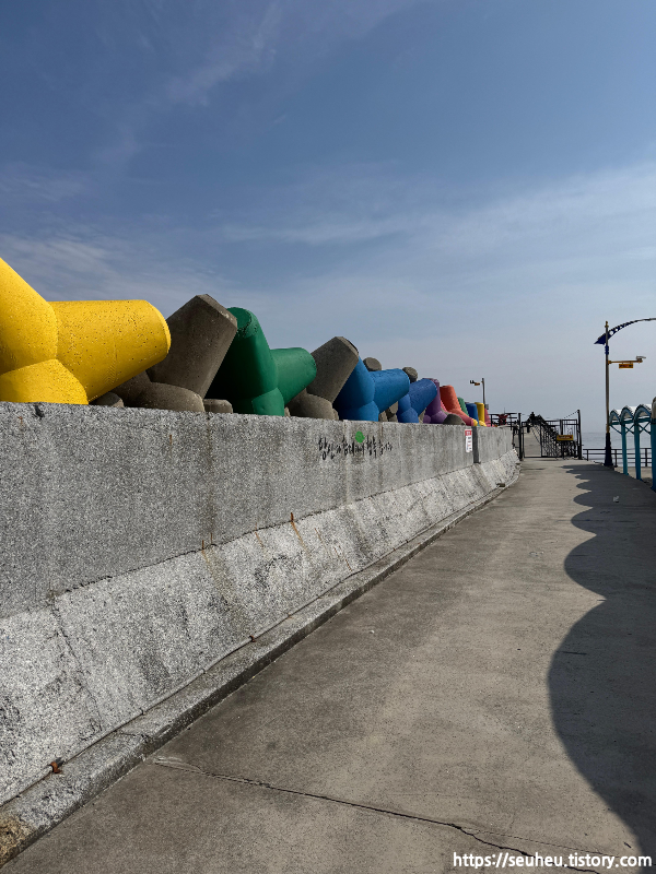 이곳은 알록달록한 테트라포트(방파제 구조물)가 있는 곳으로, 색다른 분위기를 느낄 수 있는 장소입니다.