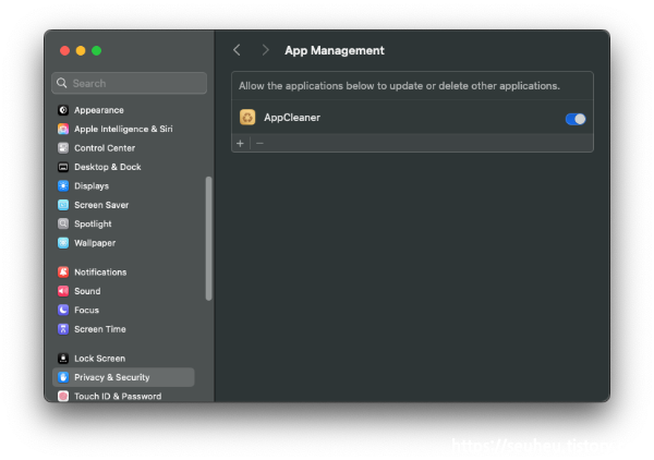 시스템 설정 → Privacy & Security → App Management