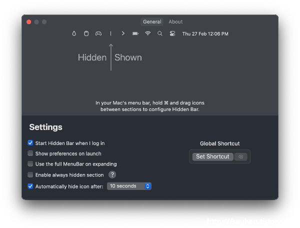 Hidden Bar는 macOS 메뉴바에서 원하지 않는 앱 아이콘들을 깔끔하게 숨길 수 있도록 도와주는 무료 앱입니다.