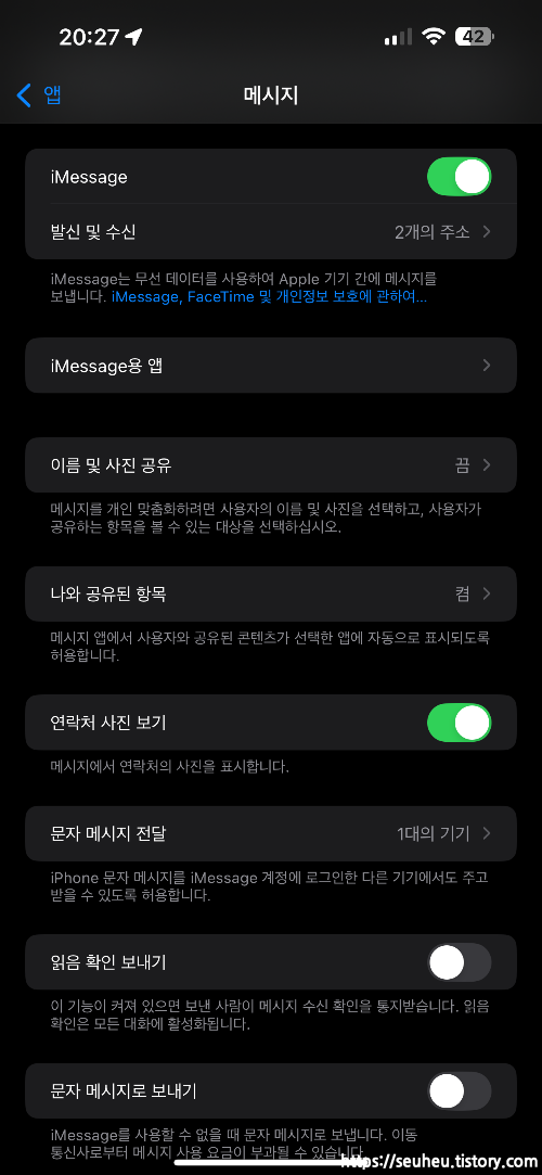 간혹 이 설정이 꺼져 있으면 iMessage만 오고 일반 문자는 수신되지 않음