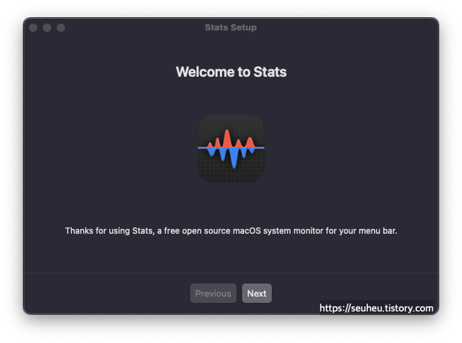 설치가 완료되었으면 Stats 앱을 실행합니다.