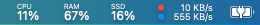 상단 메뉴바에 CPU, Memory, Disk, Network 등 시스템 상태가 아이콘과 함께 표시되는 것을 확인할 수 있습니다.