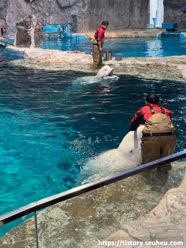 돌고래쇼가 끝난 후, 중간 공간에서 벨루가(흰 돌고래)들을 만날 수 있음