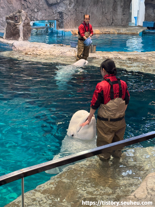 돌고래쇼가 끝난 후, 중간 공간에서 벨루가(흰 돌고래)들을 만날 수 있음