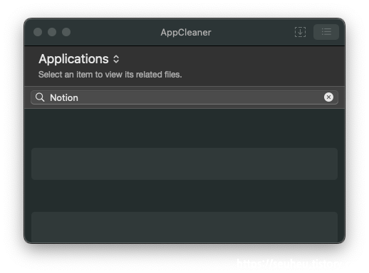 AppCleaner에서 삭제할 앱 검색 (예: Notion)