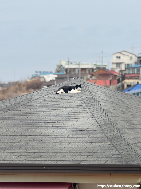 짜잔! 지붕 위에 귀여운 고양이 발견 🐱