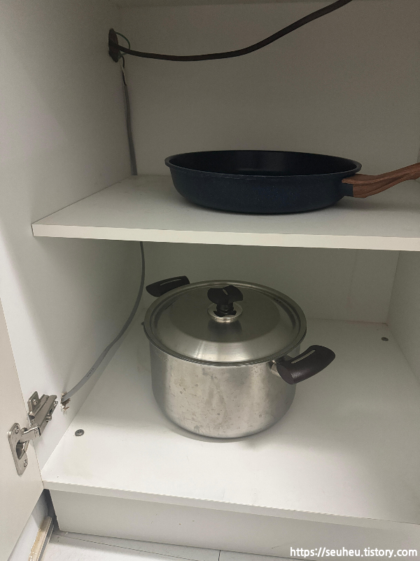 주방은 다소 좁지만, 기본적인 조리도구는 모두 갖춰져 있음