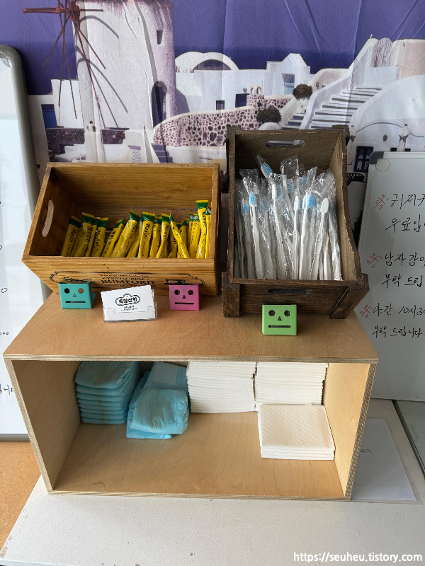 1층에서 일회용 칫솔 & 애견 배변패드 무료 제공