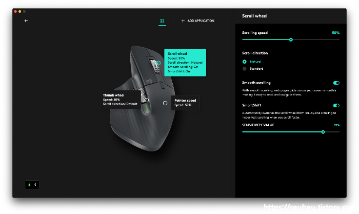 이럴 때는 Logi Options+ 앱에서 간단한 설정으로 부드럽게 변경할 수 있습니다.