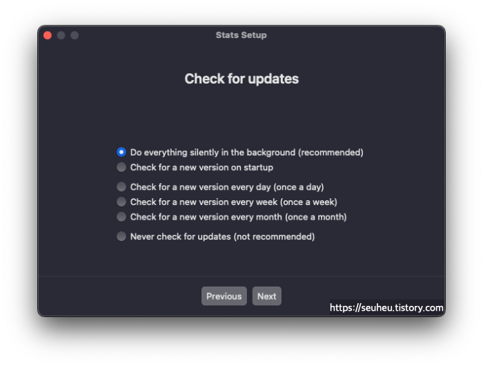설치가 완료되었으면 Stats 앱을 실행합니다.